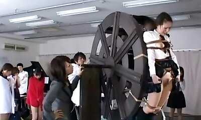 chicas asiáticas colegio disciplinado en la rueda hidráulica