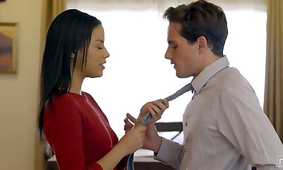 Babe with porcelain skin Lena Anderson is fucked by tanned boyfriend