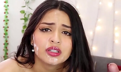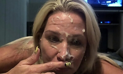 Ultra-kinky hottie gets jizm load on her face gulping all the ejac