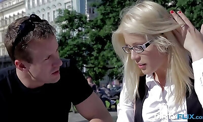 Blondie milf in glasses feels happy to get her ass drilled deep