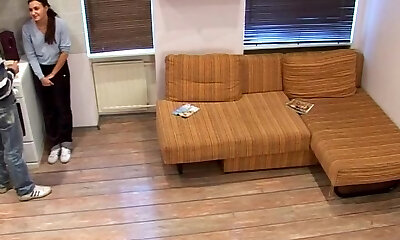 Watch amateur hidden cam video of lewd couple fucking on the wide couch