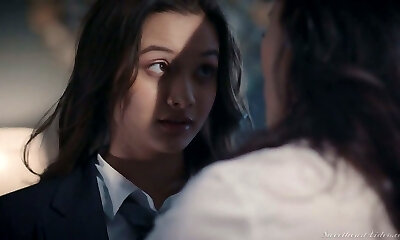 Hot like fire sexy office lesbian Alex De La Flor lures infatuating stunner for sex