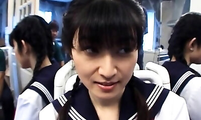 Pretty Yukari teenage school girl stripping off and jacking