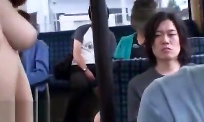 Japanese honey with immense boobs likes to get molested in the bus, on her way home