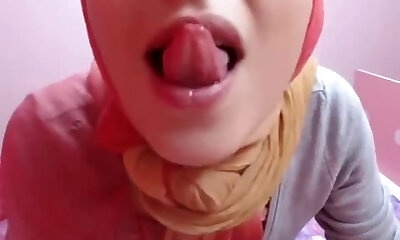 A hot slut in a hijab records a sex video for her bf where she masturbates