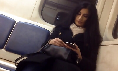 Shameless bitch Zuzinka displays her shaved pussy in the train