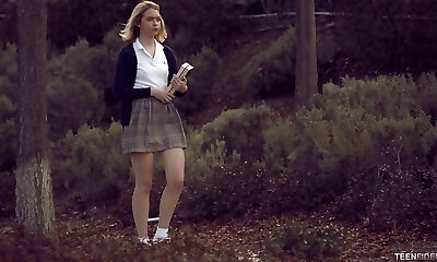 Fascinating blonde chick unsheathes her shaved pussy and gets banged hard
