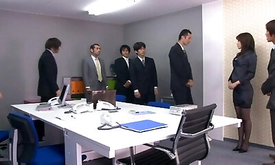 Maika is in an ultra-crazy milky attire accomplish with stockings, and it's driving these office dolls horny - Asian woman!