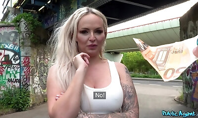 Tattooed blonde slut Louise Lee penetrated in the public place