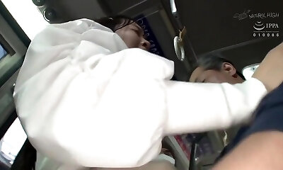 Japanese honey with immense boobs likes to get molested in the bus, on her way home