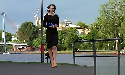 Bella Reese stunning dark haired chick public posing outdoor