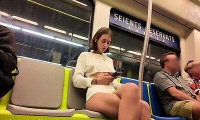 Concupiscent passenger manhandles stunning honey in public